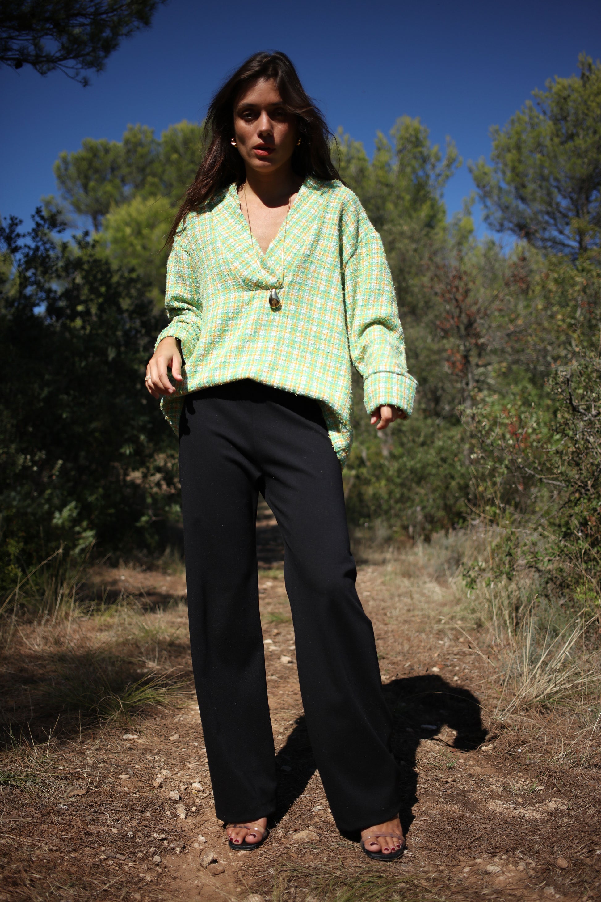 V neck tweed jumper made of italian cotton tweed from luxury deadstock, oversized cut