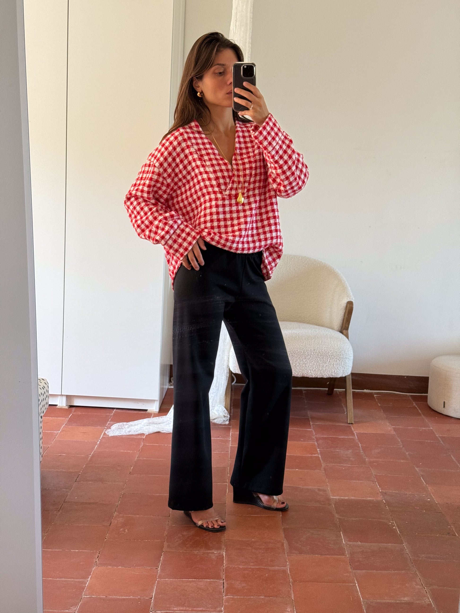 V neck tweed jumper made of italian cotton tweed from luxury deadstock, oversized cut