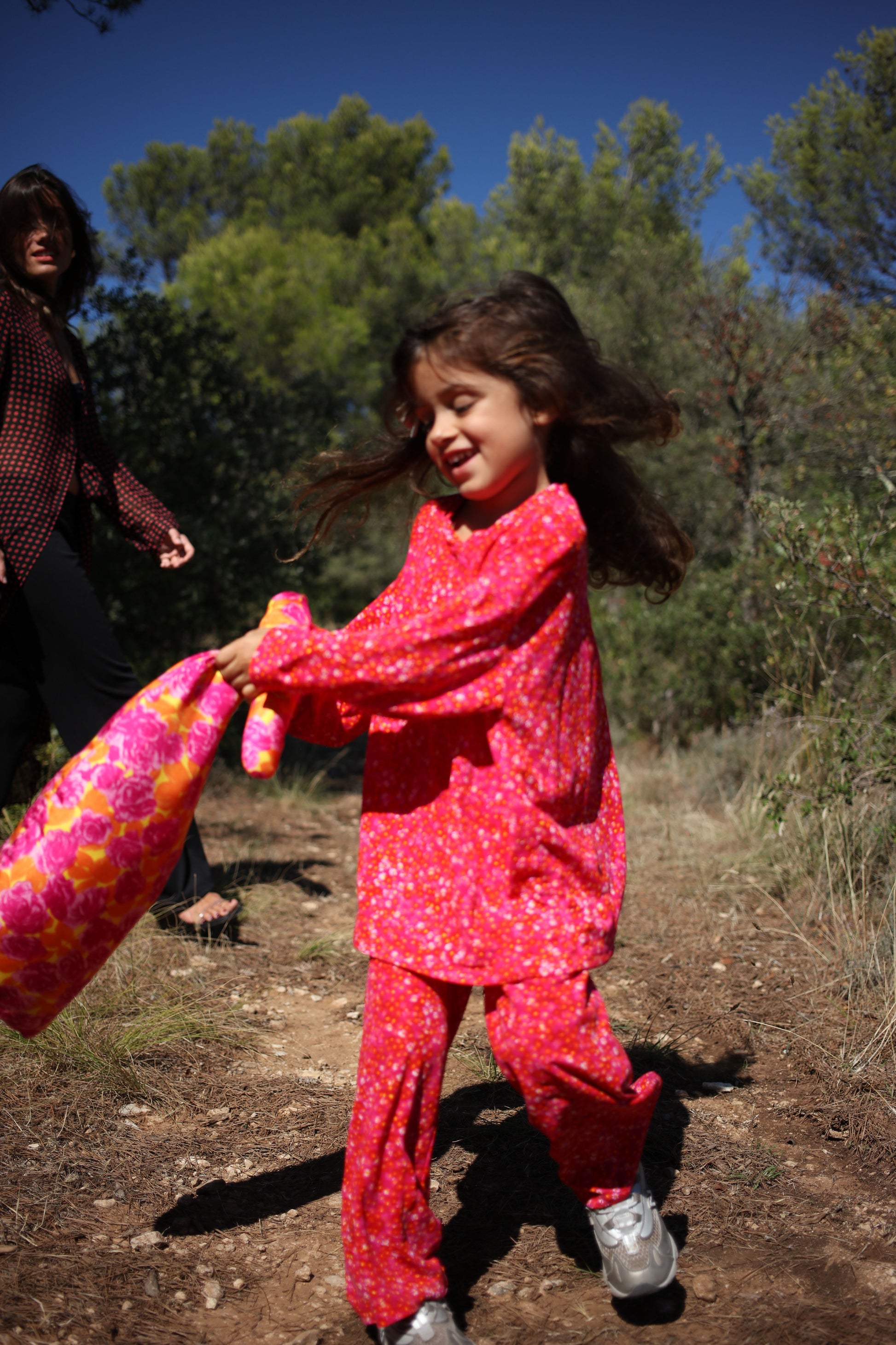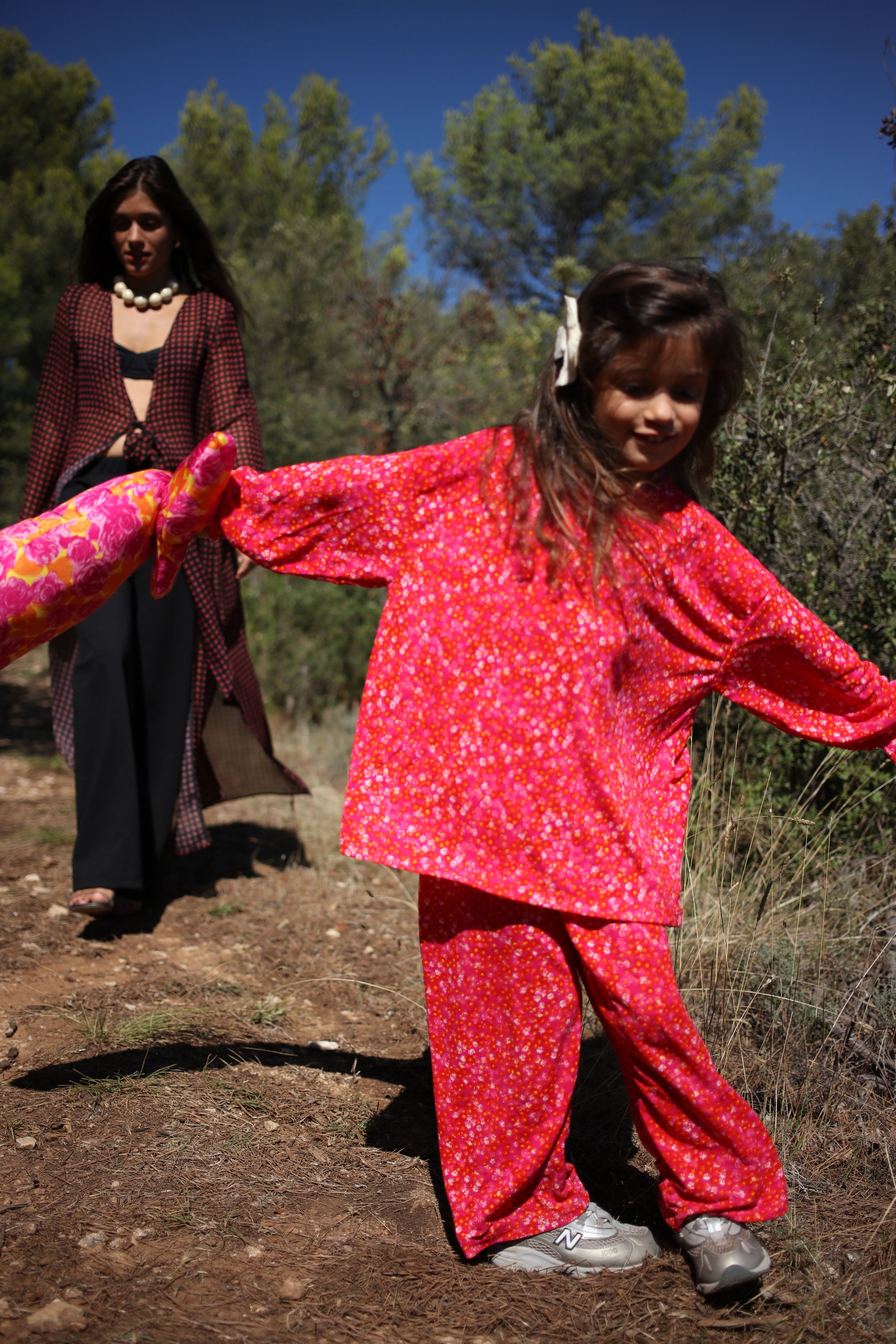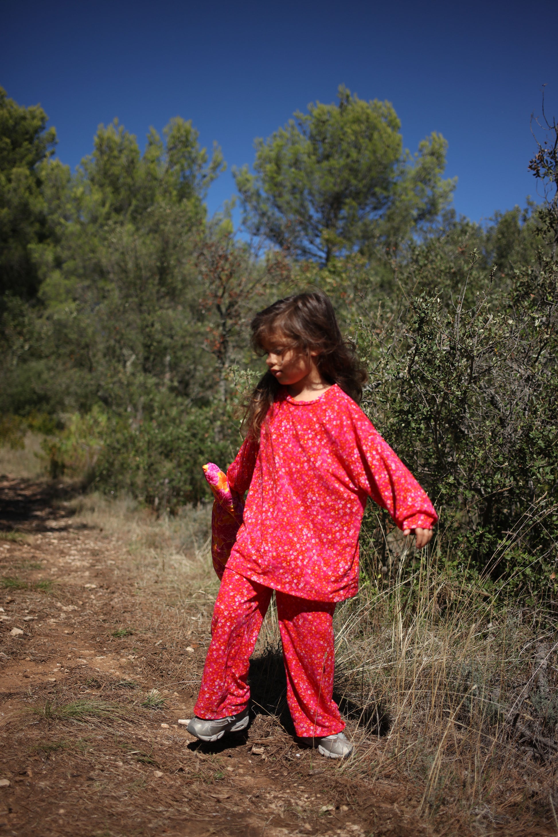 Mini set that can also be purchase separatly, made of a longsleeve tee-shirt with an oversized fit and a wide pants, the pants has an elastic waist band